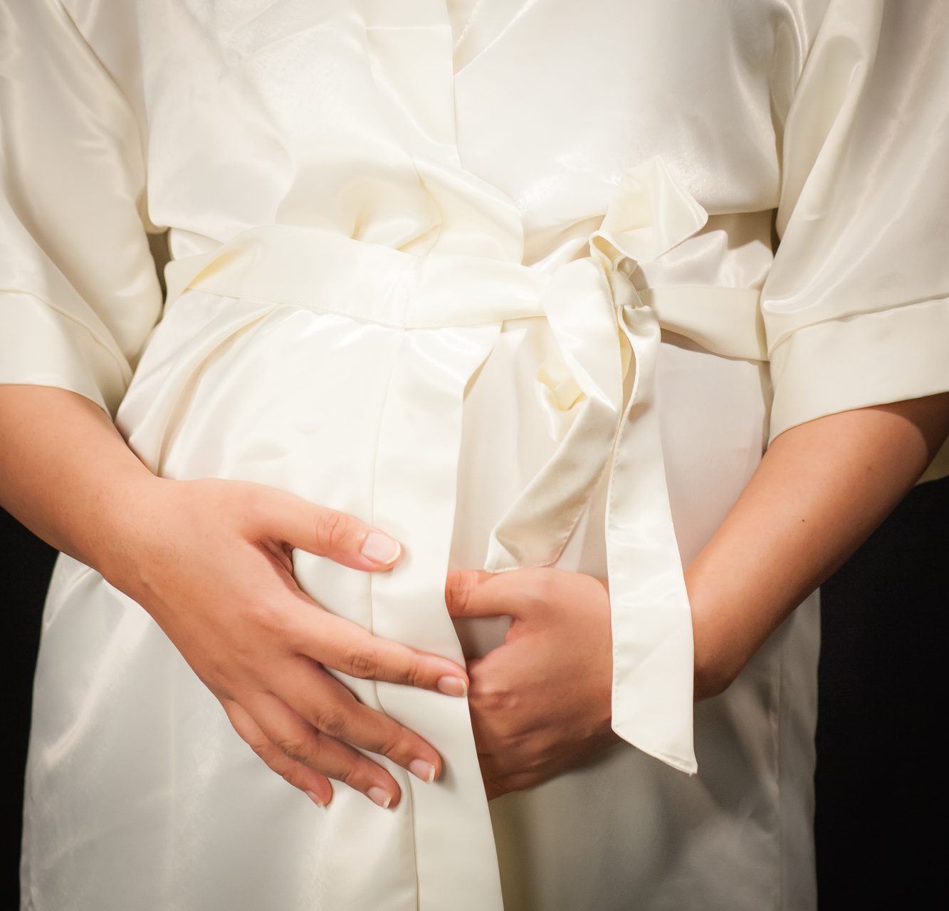 pregnent women wear white cloth with black background